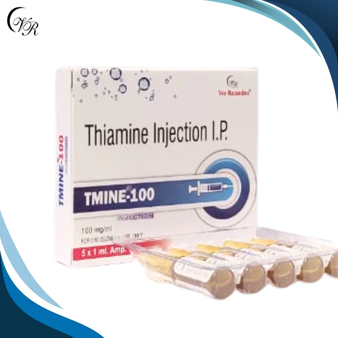 Thiamine HCL 100mg injection is a supplement of vitamin B1. Thiamine injections are used in the treatment of vitamin B1 deficiency. Thiamine HCL 100mg injections are available in the market at Vee Remedies under the brand name TMINE-100 Injection. Tmine-100 injections are an important nutrient which helps the body to perform various functions. Tmine-100 can also be helpful in digestive problems including poor appetite, ulcerative colitis, and ongoing diarrhoea.