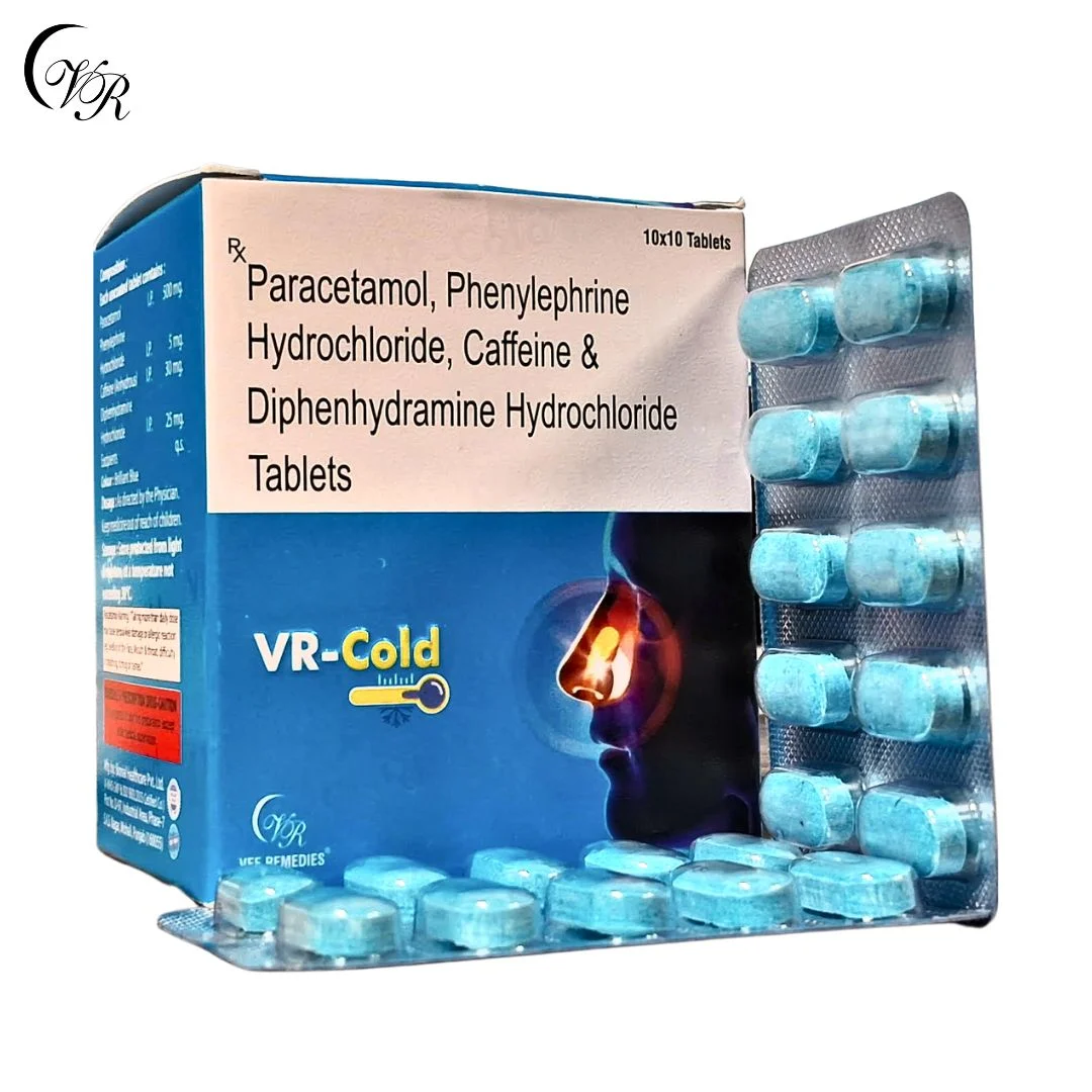 Composition: Paracetamol 500mg+Phenylephrine Hyd. 5mg+ Caffeine 30mg+Diphenhydramine Hyd 25mg Packing: 10×10 Tablet